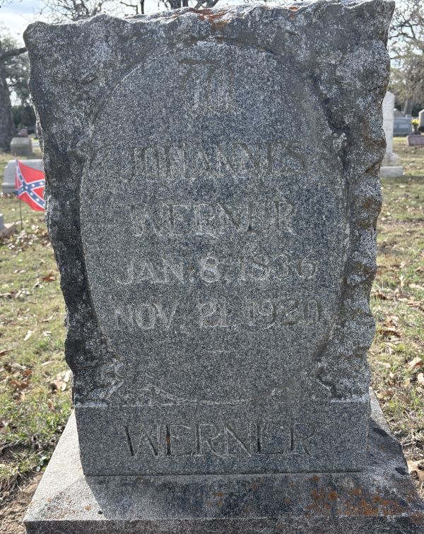 | Werner, Johannes (John) | 8 Jan 1836 | 21 Nov 1920 | NEI | - | 097 | Tombstone |