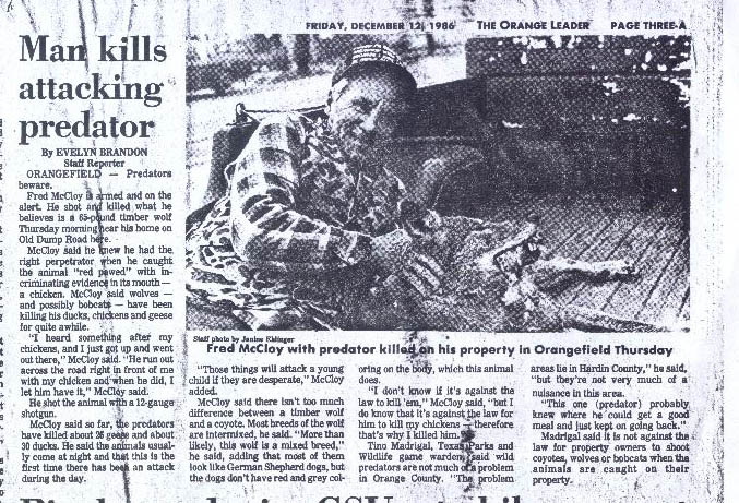 To see more on wolves in the Orange and Jefferson Counties area, please visit Chester Moore's website