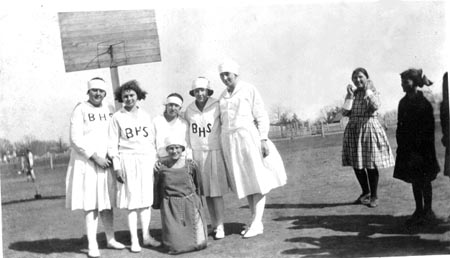 was about 1921 or 1922. I heard they were pretty good, too. On the right is my mother, Verna Carter (Carpenter). Can anybody help identify these others. I remember having them identified at one time, didn't write it down. I know at least one other name, not sure which one it fits. |