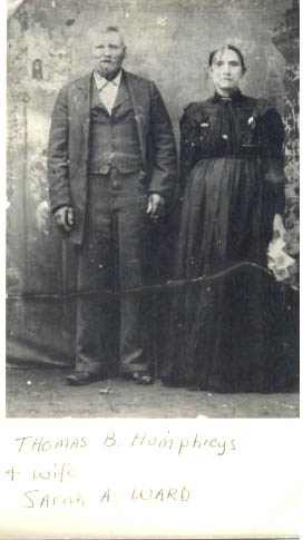 Humphreys, before 1898 Early setters of Red River coutny Texas. Thomas Benton Humphreys, uncle was William Humphreys, founder of Bogota. Sarah A. (Ward) Humphreys was born in Red River county near the Riverview area 9 August 1840. Her parents James Jourdan Ward, Jr and Hannah (Chandler) Ward came to Texas with the Wavell Colony in 1820. |