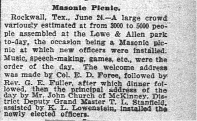 Newspaper Articles about the Rockwall County Lodge