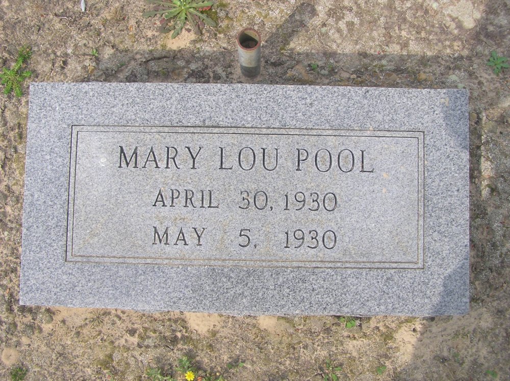 Back of Stone; Croley FHM; H/o Babette; S/o Palmour & Bertha Senn McCool |