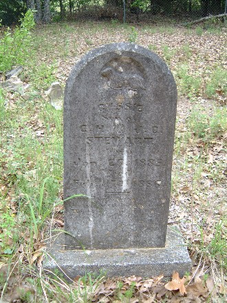 Gussie was the one year old son of Cortutian H. and Julia Stewart. His siblings were: Sisters: Mariah E., Mary, Frances, Maybell, Della, and Pearlie. Brothers: William, and Charles. Several of them born years after his death. You can learn more of his family on the pages for Julia C. Stewart and Sallie E. Stewart. (Research by Betty Phillips using the Van Zandt County US census, Jones Cemetery and the VZC Marriage Records Book 1848 - 1909)