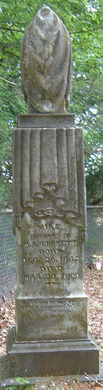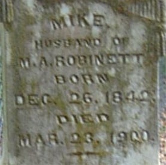 MACK "MIKE" ROBINETTMike was the husband of Mary Ann Morris Robinett. He was a Confederate Civil War Veteran, ranked 2nd Sgt., Company H. 10th Texas Calvary . Acording to the 1880 Van Zandt County, Texas, Census, Mike was a farmer, lived with his wife Mary Ann, and had the following children: John, age 12, in school; Mittie, age 8, in school; Dee, age 5 , in school; and Mary age 2.