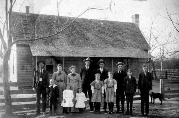 James Y. Daniel family of Oak Grove, 1907 Back row, left to right: James Y. Daniel, Martha Robbins Daniel, Maggie Daniel Pritchett, John Elias Daniel, William Arch Daniel, Robbins Daniel, Claud Daniel, Isham Marion Daniel. Front row: Howard Daniel, Bertha and Ora Pritchett, Marie Daniel, Lillie Daniel