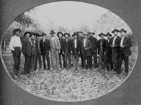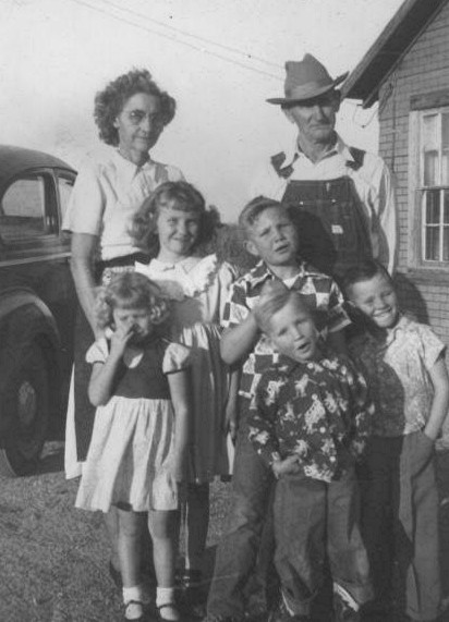 Photograph and identifications courtesy of Mrs. Inez Faulk Gearner of Bryan, Texas (pictured far left in front row).Top Row Standing: Manilla May Faulk holding Jessie Faulk, Emmett Green, J. W.. (Bill) Faulk, Libby Crow, Alvin Snider, Isolene Harris, George Sikes, Johnny Faulk, Bill Joe Sikes, Tommy Snider.